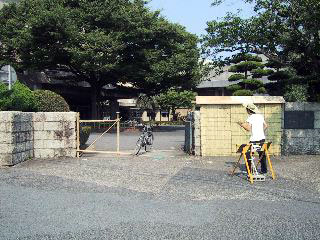 この日朝来た時には何もなかった正門に突如妙な木材が出現。
